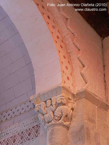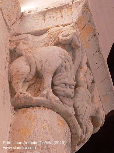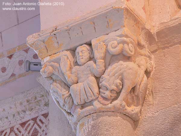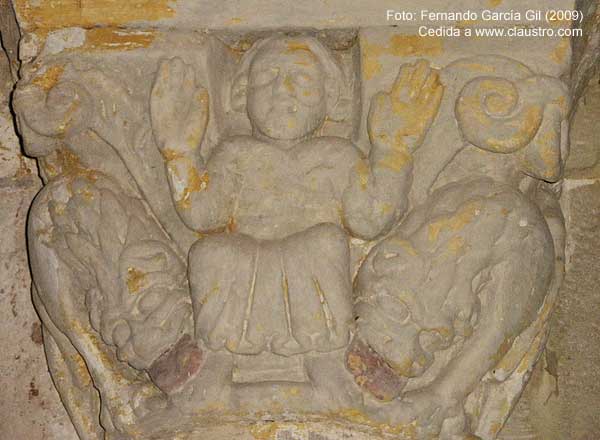y la de Cristo representado en el capitel de enfrente en la misma posición. Ello contribuye a realzar la visión de Daniel como una prefiguración de Cristo. |