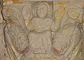 En el capitel ubicado en el lado de la Epístola del arco triunfal aparece
